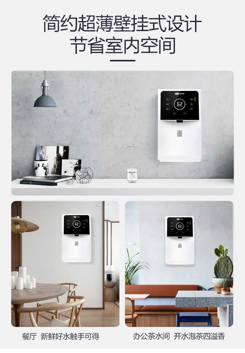 該款管線機采用炫白機身,極簡潮流,適合各種家裝風格;機型小巧,不管是廚房、客廳、還是臥室,可壁掛,節省空間!