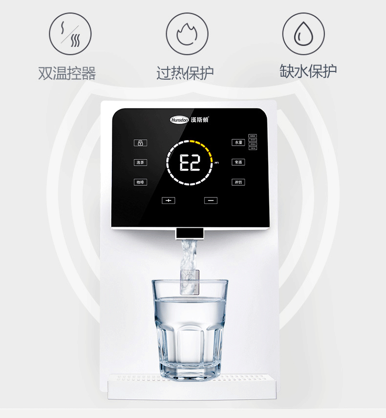 雙重溫控,自動加熱,干燒自動斷電,安全放心。水電分離,防漏水漏電;全套封閉集成,無二次污染,輸出健康鮮活水;童鎖設計,避免兒童誤碰,多一重保護,多一份安心。