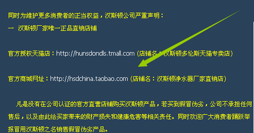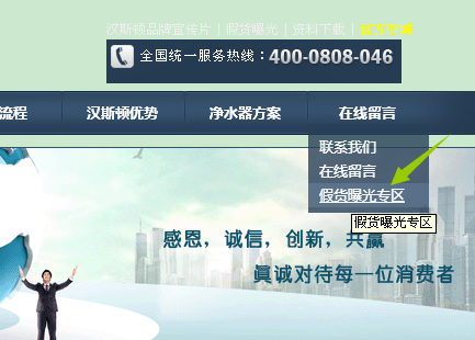 一:打開百度搜索---輸入漢斯頓凈水器官網---點開www.hansidun.com。---點開在線留言下拉框假貨曝光專區,就可以看到漢斯頓授權網店的地址和店鋪名稱了。可以直接點開鏈接或者在電商平臺搜索店鋪名稱。