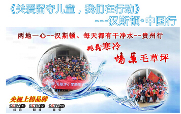 作為名族企業,漢斯頓感恩回報社會。在漢斯頓發展產品研發和品牌建設的同時,漢斯頓一直熱心公益事業。漢斯頓從2012年開始關愛留守兒童,相繼為四川石門小學、貴州的茅草坪小學等全國500多所山區學校,免費為他們安裝凈水器設備,同時捐贈各種衣物和學習用品。