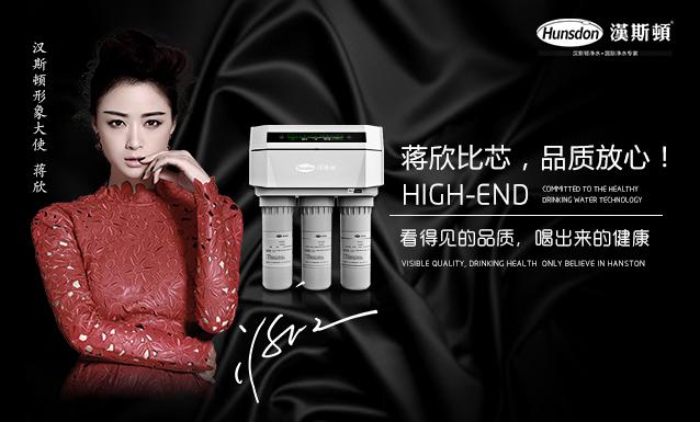 2016年,漢斯頓正式簽約國內著名影星蔣欣為品牌形象代言人,倡導漢斯頓的品牌理念,突顯漢斯頓品牌魅力和產品獨特的技術優勢,將蔣欣完美的公眾形象與漢斯頓品牌相結合,提升品牌知名度,致力于將漢斯頓打造成國內凈水行業的高端品牌。