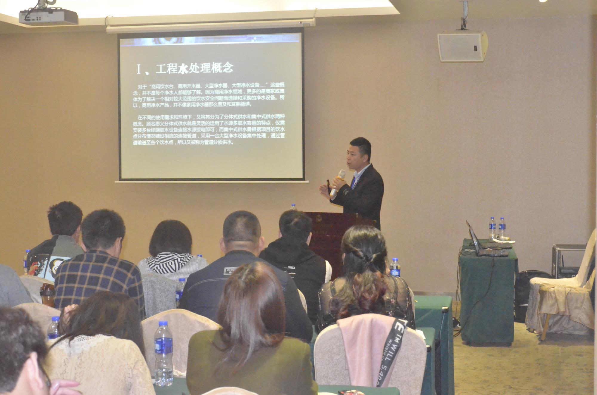 工程部王帥主管結合凈水器發展趨勢向大家闡述商用工程類凈水設備的如何做市場,王主管就近年來漢斯頓在國內地區的工程類項目發展狀況做了詳細的說明,包括漢斯頓各區域案例分析、成本與盈利銷售數據說明、公司產品體系分類、針對不同群體所采用的不同解決方案及所取得的資質榮譽,最后就公司給予的強有力支持政策進行講解,希望能夠幫助有意向的代理商做強做大。