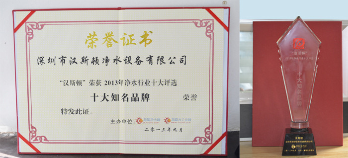 漢斯頓榮獲2013年中國凈水十大知名品牌