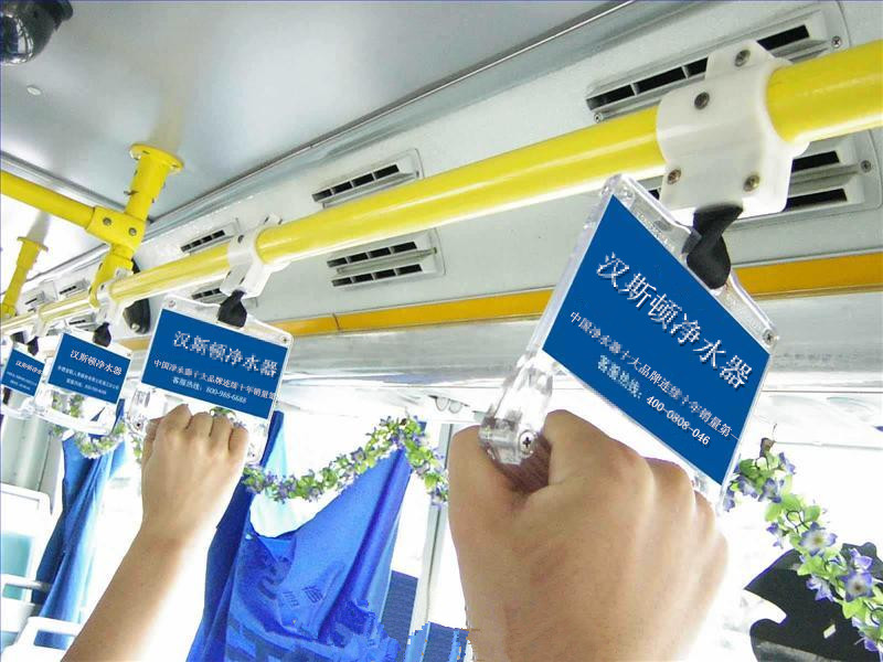 漢斯頓凈水器宣傳連公交車上的拉手也不放過