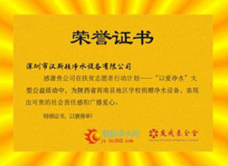 漢斯頓積極投入大型公益事業,如:母親水窖工程、捐資助學活動、天天凈水活動、無私奉獻活動(雅安地震物資捐贈)、萬企公益捐贈活動等,都能看見漢斯頓企業的足跡。2020年抗疫期間,漢斯頓心系抗疫人員健康,積極支援疫情前線,捐贈大量凈水設備。始終如一地堅持公益事業,服務社會、造福百姓,漢斯頓也因此榮獲深圳溫度“愛心加盟商家公益慈善”證書及“中華環境保護基金會愛心慈善家”證書,讓漢斯頓關愛人類飲水健康的品牌理念進一步深入人心。>查看詳情+