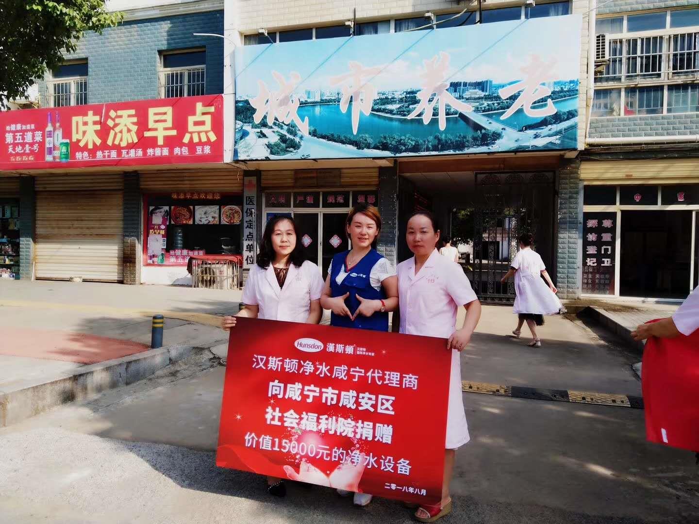 漢斯頓咸寧代理商向咸寧市咸安區(qū)社會(huì)福利院和夕陽紅福利院共捐贈(zèng)價(jià)值30000元的凈水設(shè)備及其他生活用品。