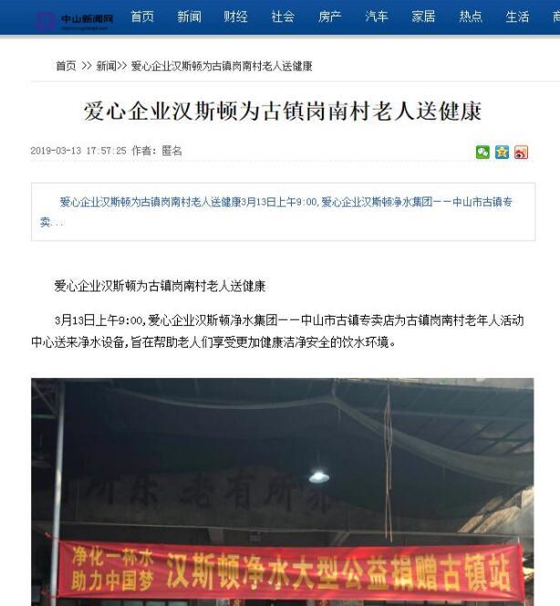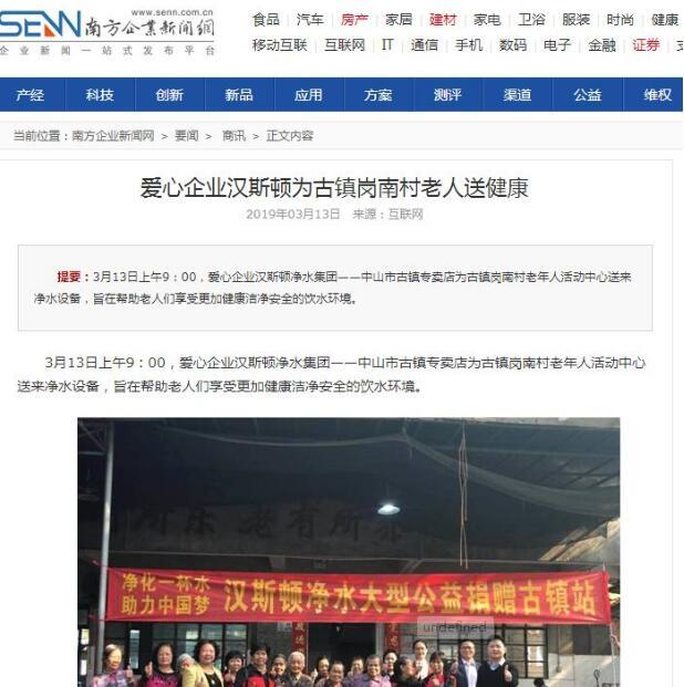3月13日上午9:00,漢斯頓集團攜手廣東省中山市古鎮鎮崗南村村委,在老年人活動中心開展“凈化一杯水 助力中國夢”活動,為老人們送來暖心又健康的凈水產品及其他慰問品,祝愿他們可以享受健康的飲水生活。
