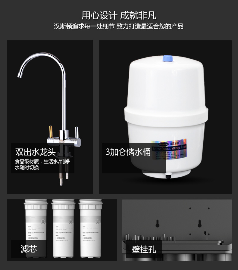 5、品牌優勢:漢斯頓多次榮獲"國家凈水行業委員會常務理事單位、國家凈水器及其系統標準化工作組成員單位、中國凈水器3AAA企業、中國凈水器十大品牌、中國凈水器行業標桿企業、國際凈水器十大品牌、歐洲凈水器行業協會理事單位、國際凈水器核心材料研究中心 "等頭銜,因此具備大品牌的實力優勢。